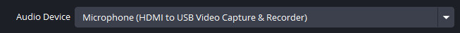 Below the tickbox, select Audio Device: Microphone (HDMI to USB Video Capture & Recorder)