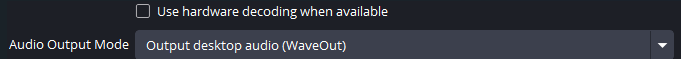 Scroll down and choose Audio Output Mode Output Desktop Audio (WaveOut):