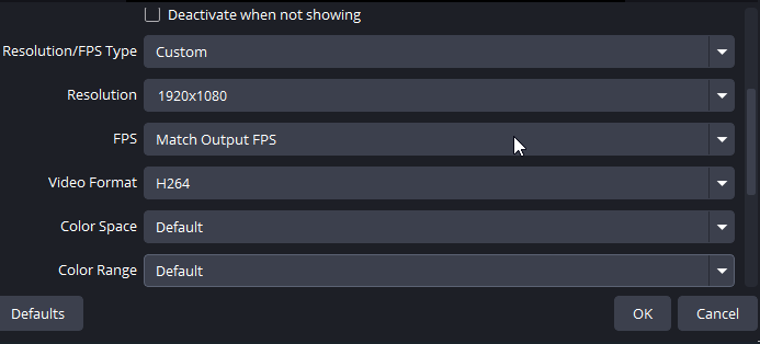 From the options now exposed, pick a resolution from the dropdown, and then Video Format H264.
