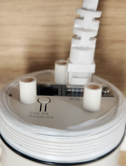 You will need a phone or a device with Wi-Fi to set the unit's admin and Wi-Fi password. Run through the steps below before you mount the unit and attach the cable gland. If your existing network cable is plugged into a POE switch, you won't need the mains power adapter, cable, or the white box in the package.