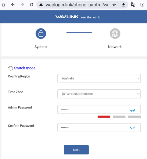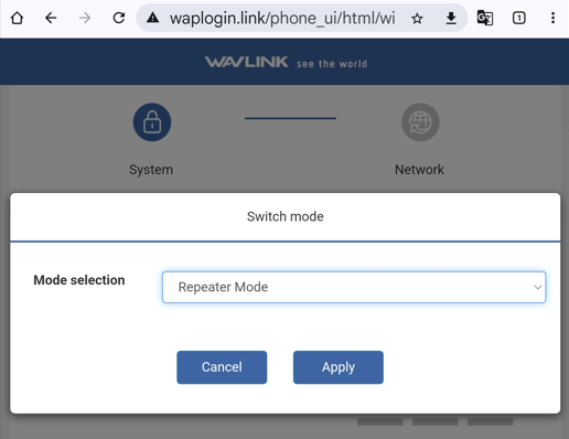 - Wait for the WAVLINK admin page to load (Android / PC: open a browser and go to 192.168.30.1)