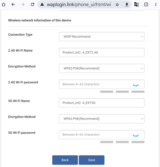 - Type Wi-Fi passwords in the 2.4G and 5G boxes (you can use the same as your existing Wi-Fi)