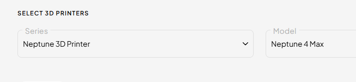 Select Neptune 3D Printer, and then your specific printer model from the dropdowns